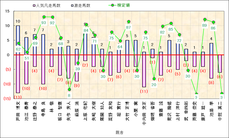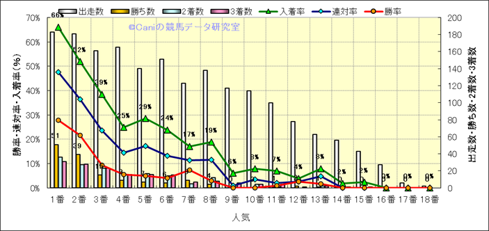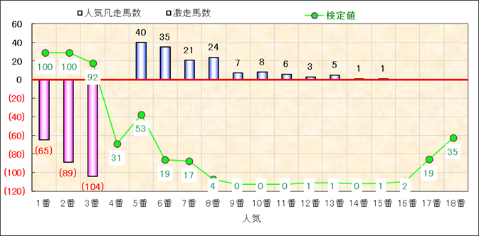 人気凡走馬:1-3番人気で着外、激走馬:5-18番人気で入着 |