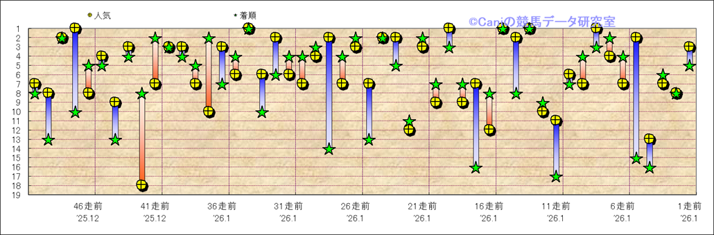 所属馬 近50レースの人気と着順 |