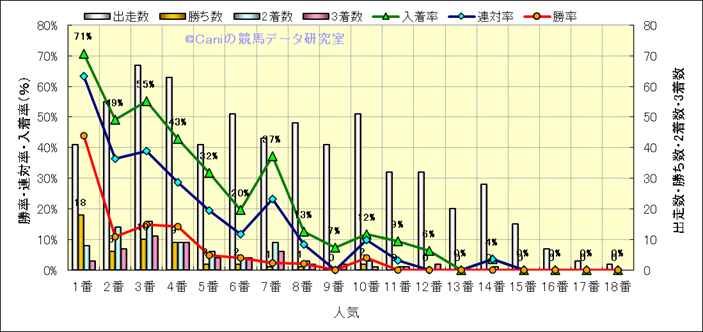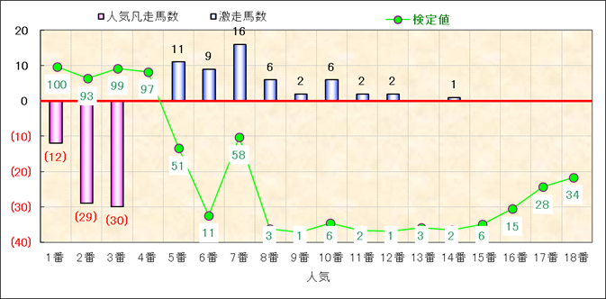 人気凡走馬:1-3番人気で着外、激走馬:5-18番人気で入着 |