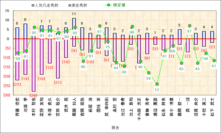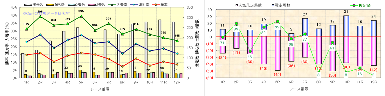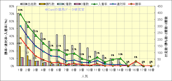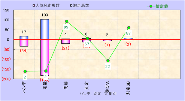 人気凡走馬:1-3番人気で着外、激走馬:5-18番人気で入着 |