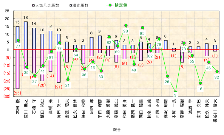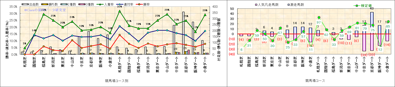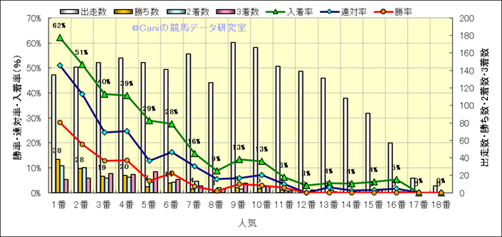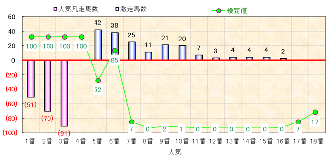 人気凡走馬:1-3番人気で着外、激走馬:5-18番人気で入着 |