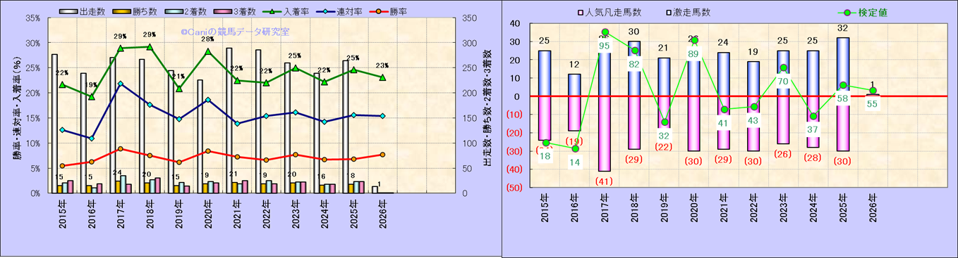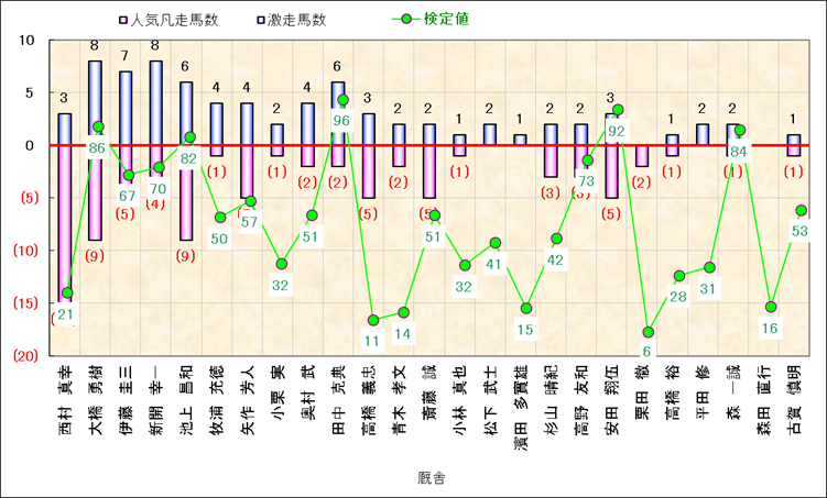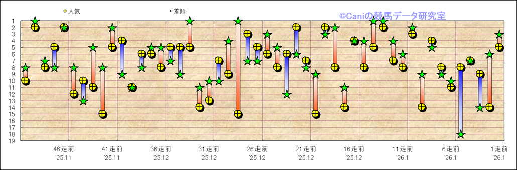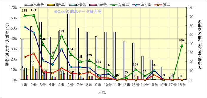 人気凡走馬:1-3番人気で着外、激走馬:5-18番人気で入着 |