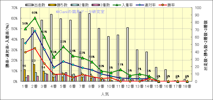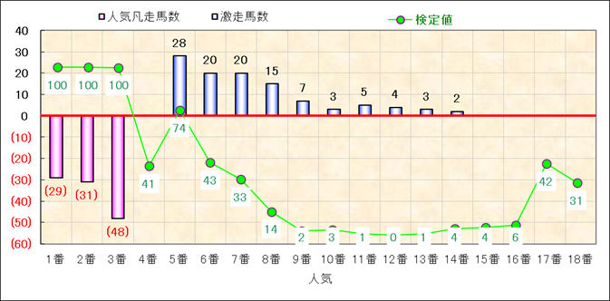 人気凡走馬:1-3番人気で着外、激走馬:5-18番人気で入着 |