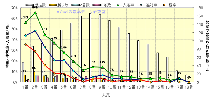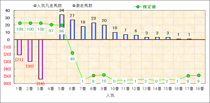 人気凡走馬:1-3番人気で着外、激走馬:5-18番人気で入着 |