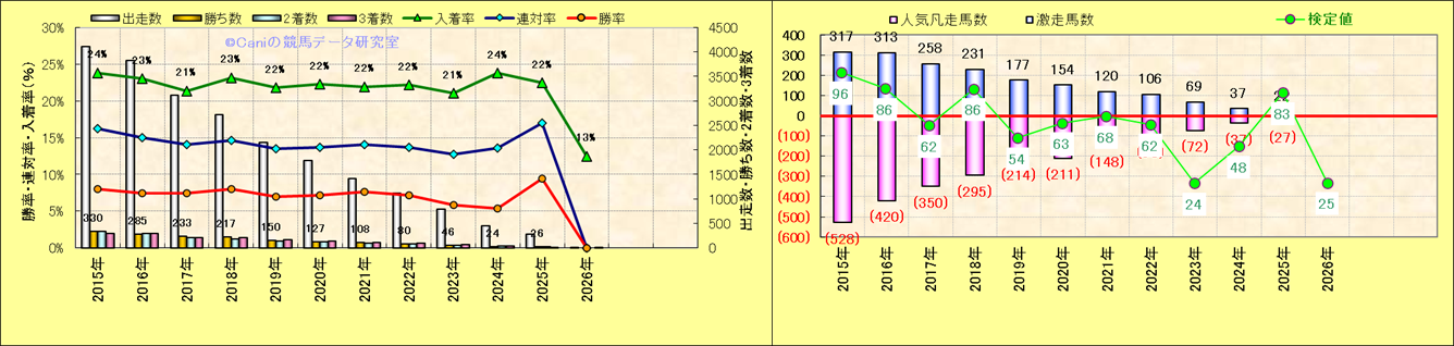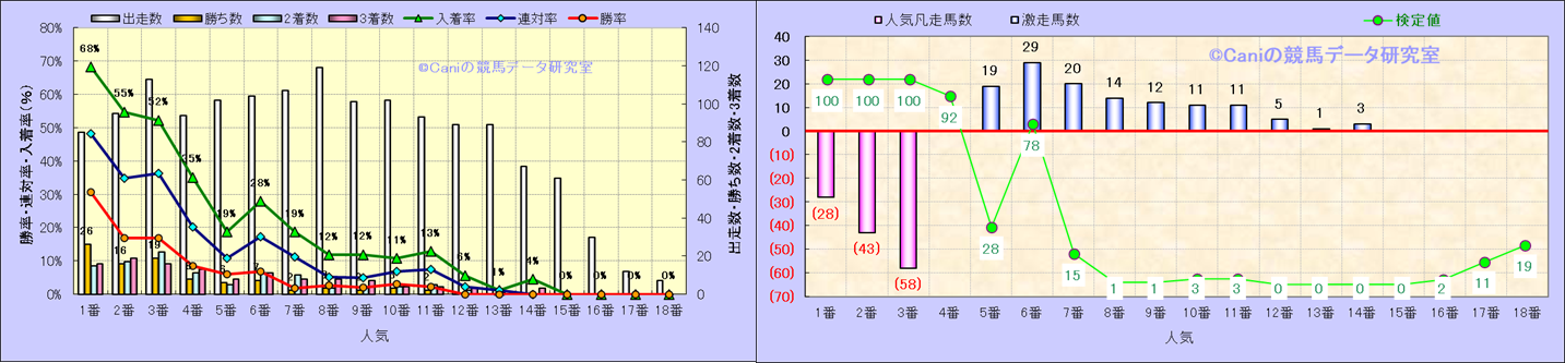 人気凡走馬:1-3番人気で着外、激走馬:5-18番人気で入着 |
