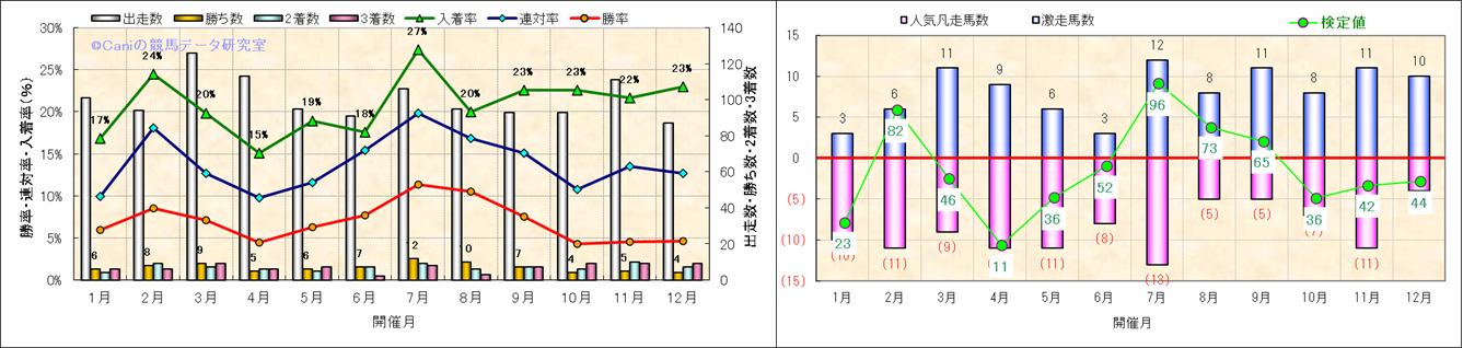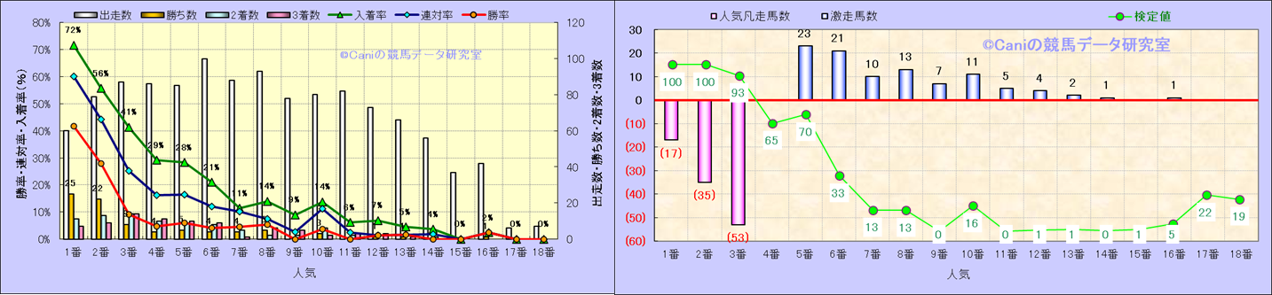 人気凡走馬:1-3番人気で着外、激走馬:5-18番人気で入着 |