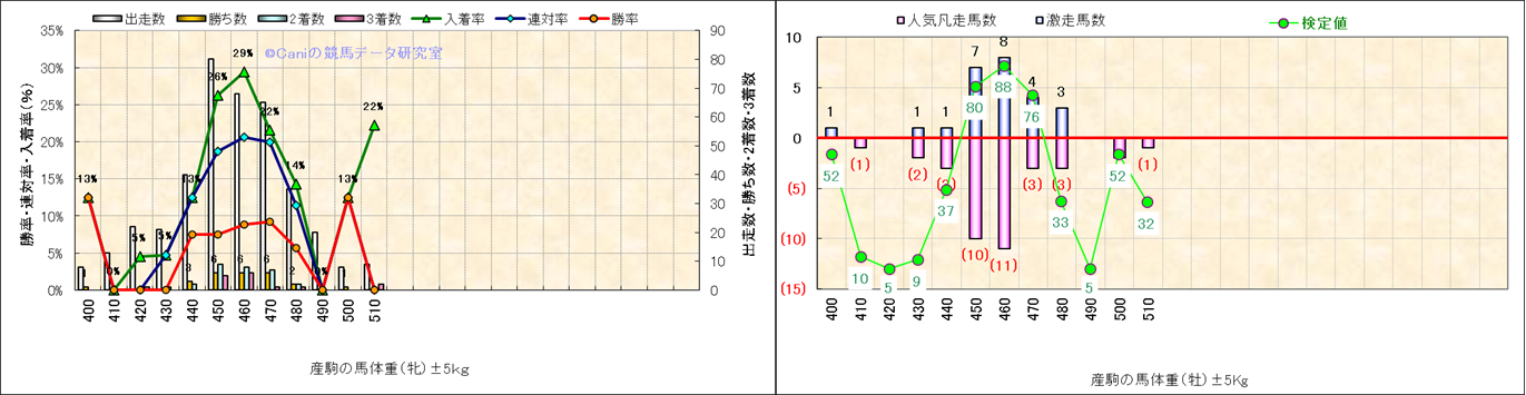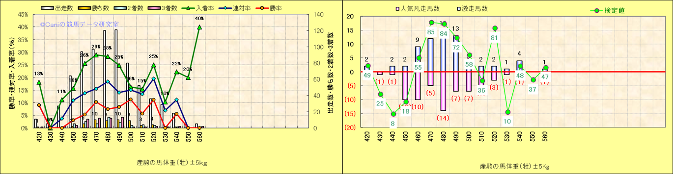 牡産駒の体重別成績-近3年- |
