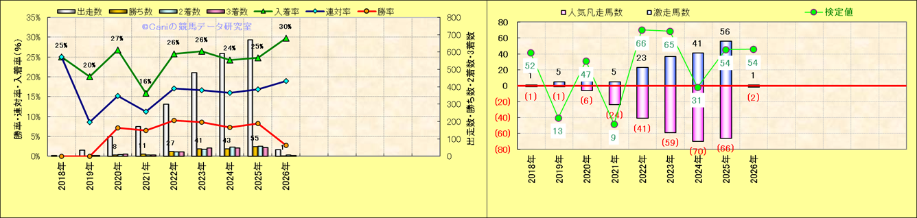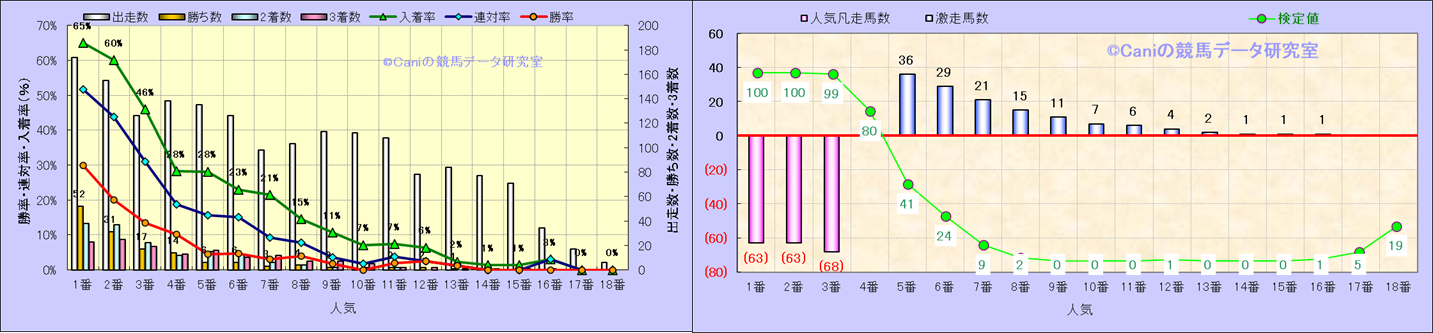 人気凡走馬:1-3番人気で着外、激走馬:5-18番人気で入着 |