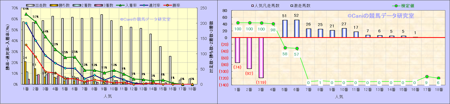 人気凡走馬:1-3番人気で着外、激走馬:5-18番人気で入着 |