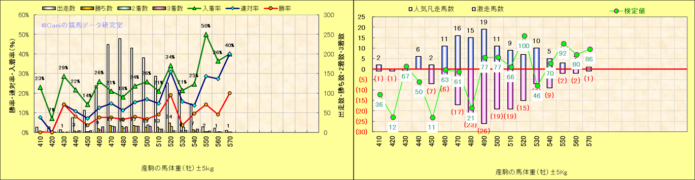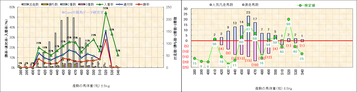 牡産駒の体重別成績-近3年- |