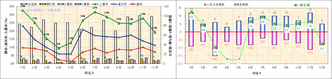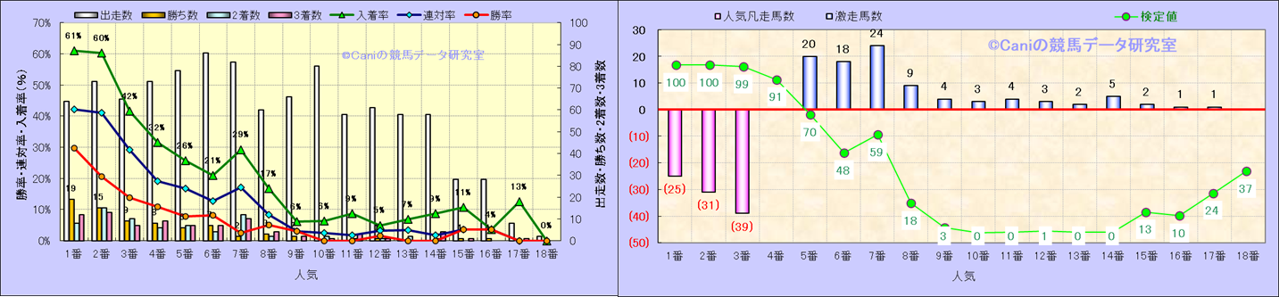 人気凡走馬:1-3番人気で着外、激走馬:5-18番人気で入着 |