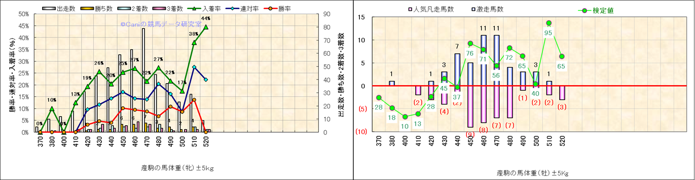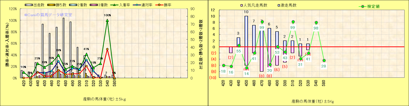 牡産駒の体重別成績-近3年- |
