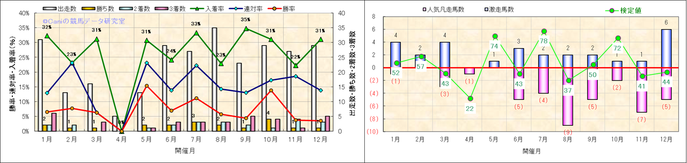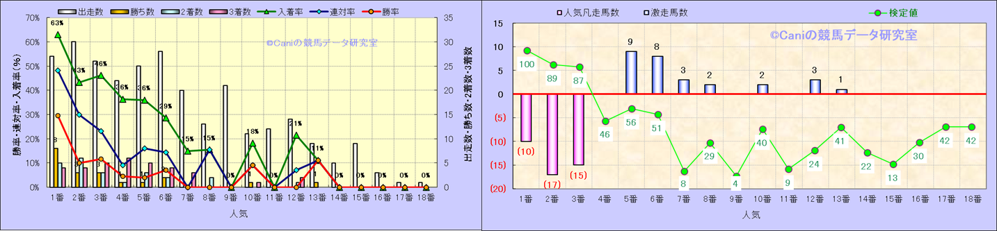 人気凡走馬:1-3番人気で着外、激走馬:5-18番人気で入着 |