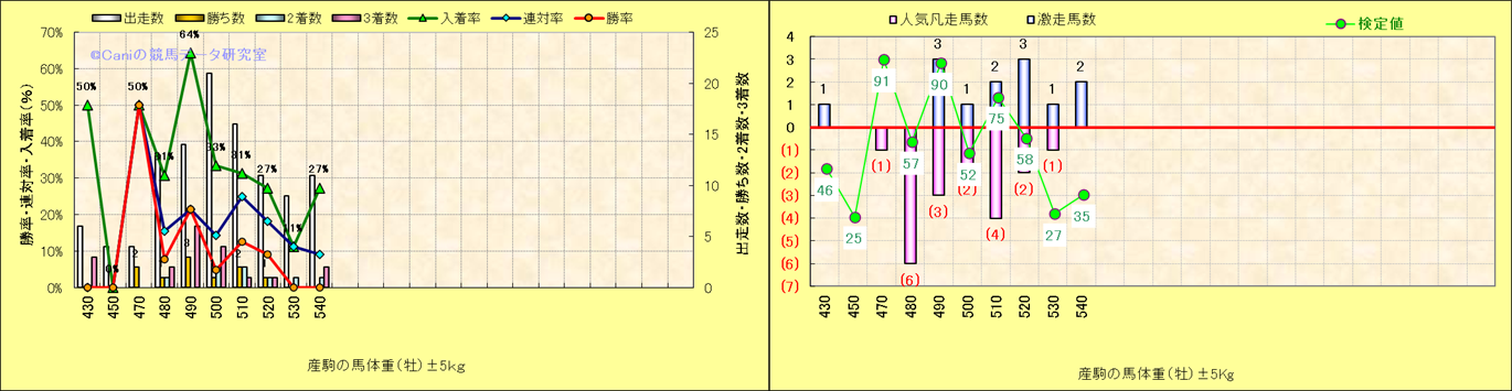 牝産駒の体重別成績-近3年- |