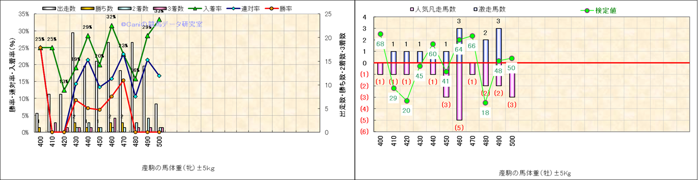 牡産駒の体重別成績-近3年- |