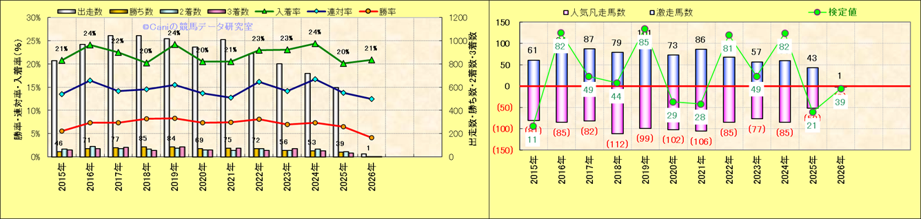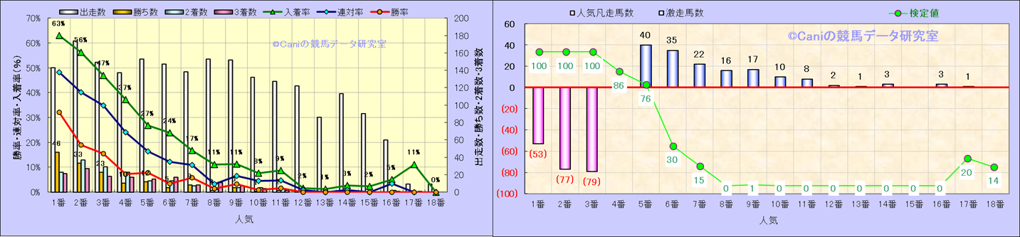 人気凡走馬:1-3番人気で着外、激走馬:5-18番人気で入着 |