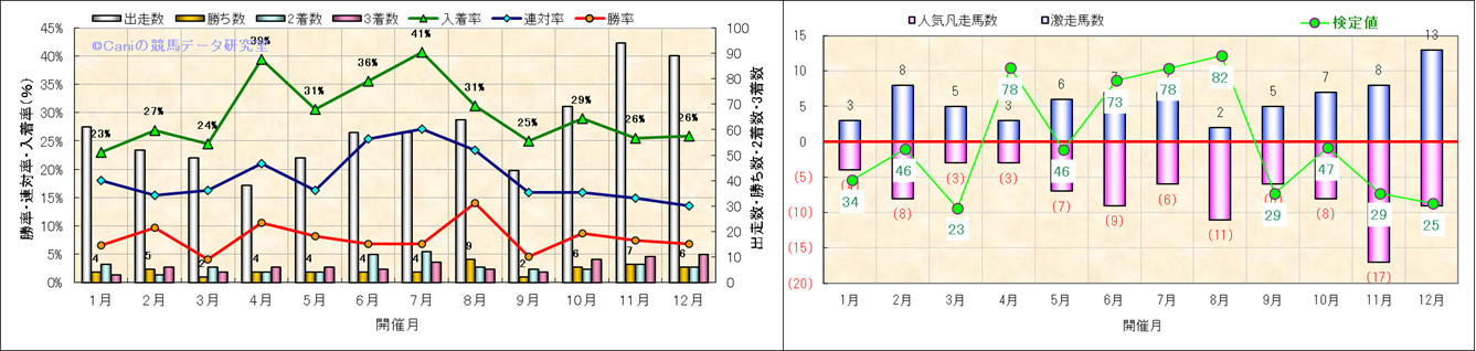人気凡走馬:1-3番人気で着外、激走馬:5-18番人気で入着 |