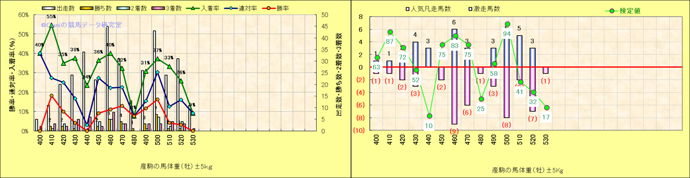 牡産駒の体重別成績-近3年- |