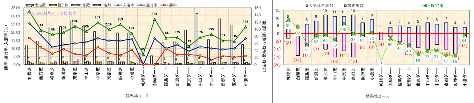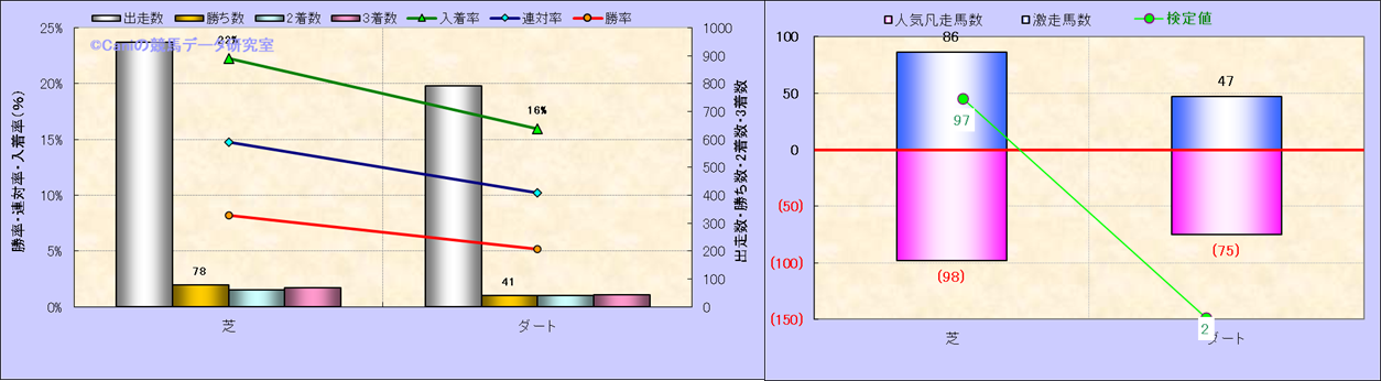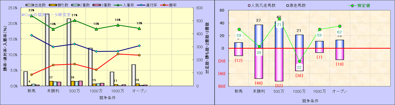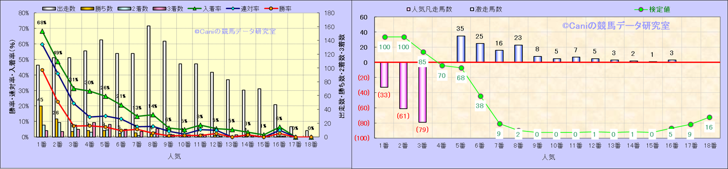 人気凡走馬:1-3番人気で着外、激走馬:5-18番人気で入着 |