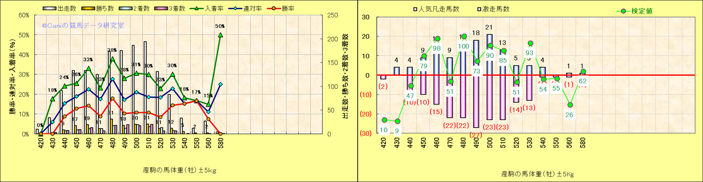 牝産駒の体重別成績-近3年- |