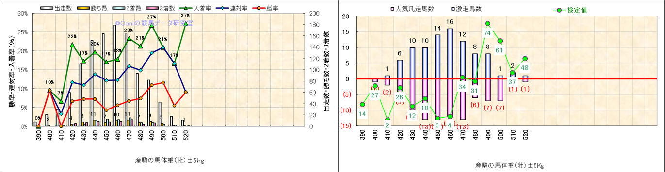 牡産駒の体重別成績-近3年- |