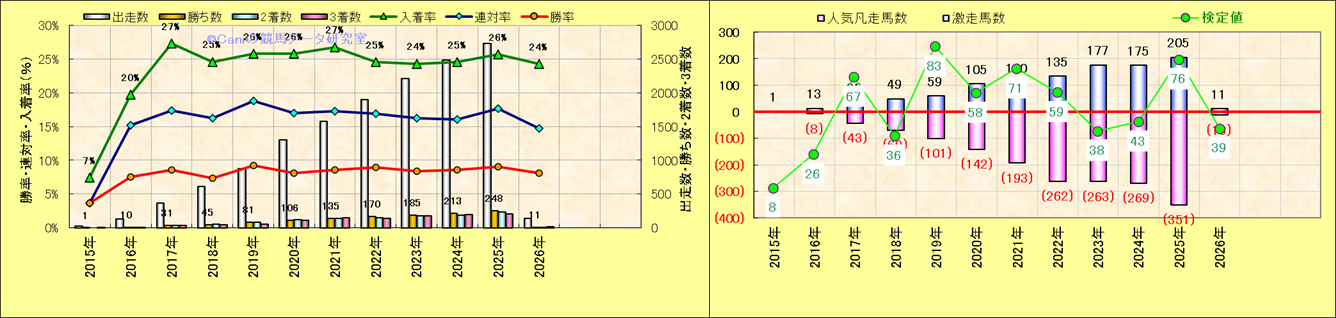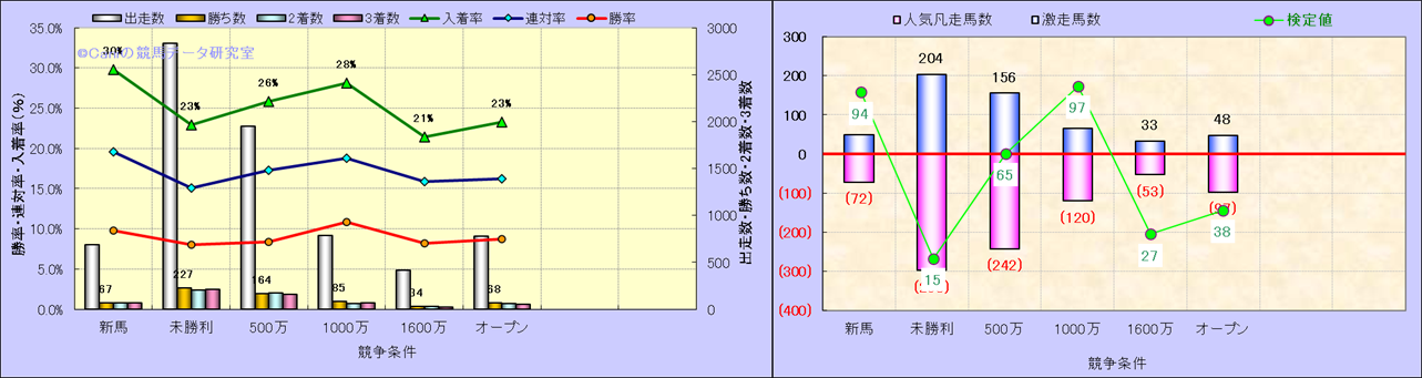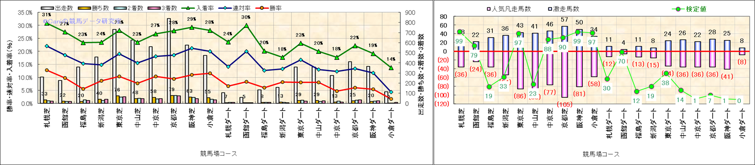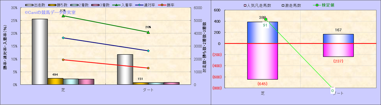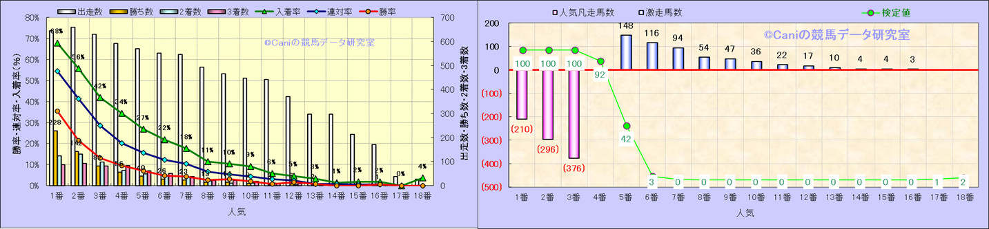 人気凡走馬:1-3番人気で着外、激走馬:5-18番人気で入着 |