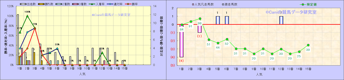 人気凡走馬:1-3番人気で着外、激走馬:5-18番人気で入着 |