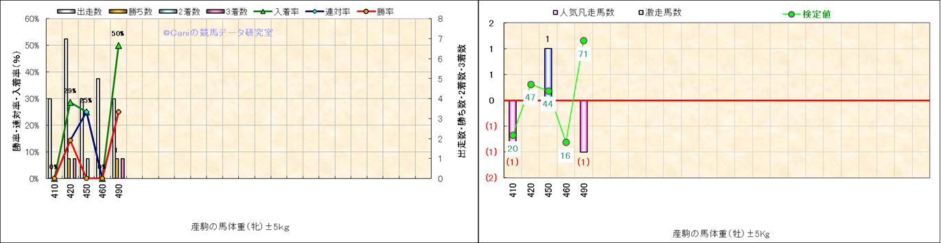 牡産駒の体重別成績-近3年- |