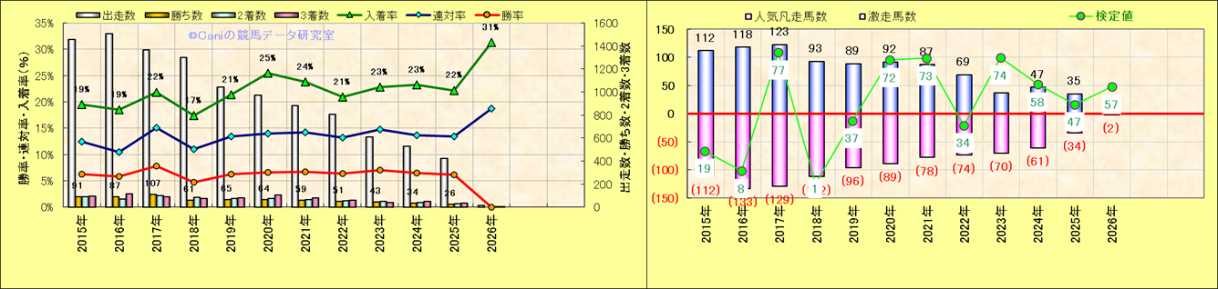人気凡走馬:1-3番人気で着外、激走馬:5-18番人気で入着 |