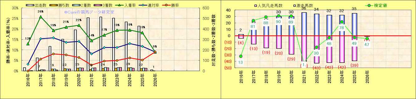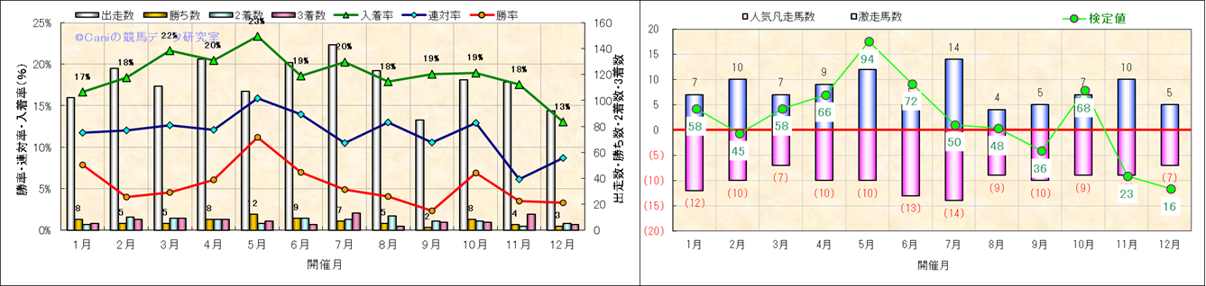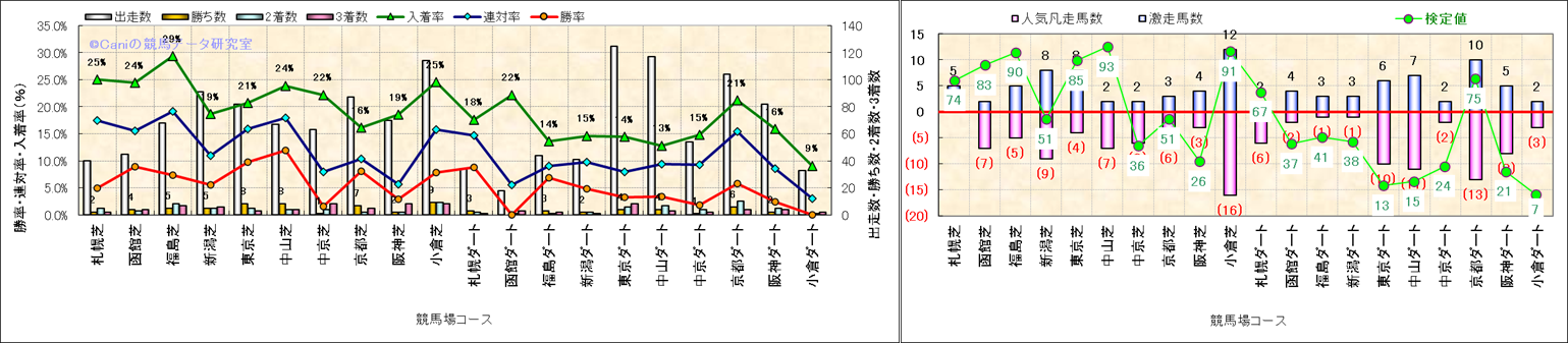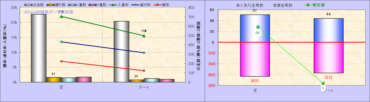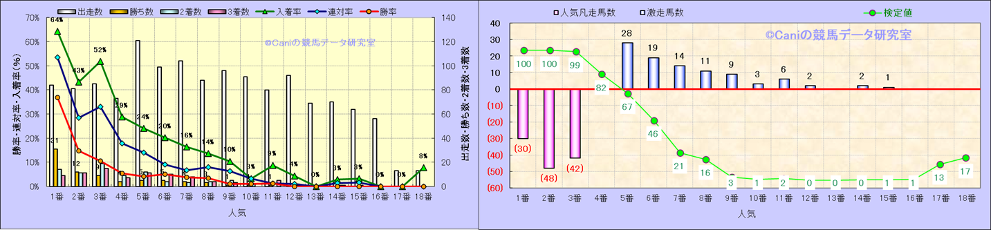 人気凡走馬:1-3番人気で着外、激走馬:5-18番人気で入着 |