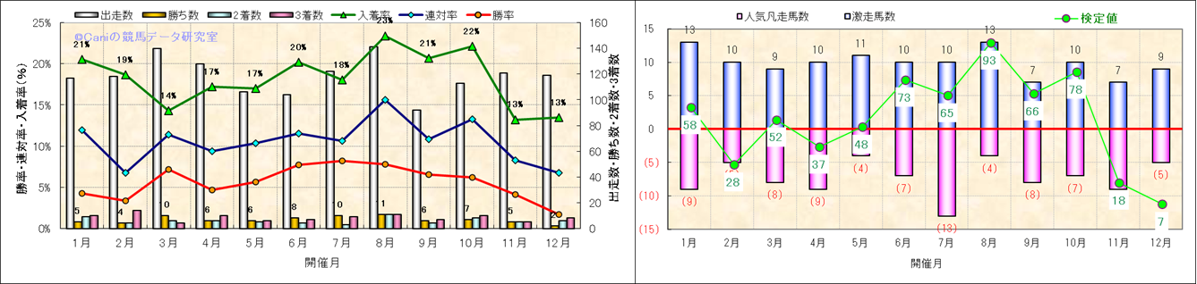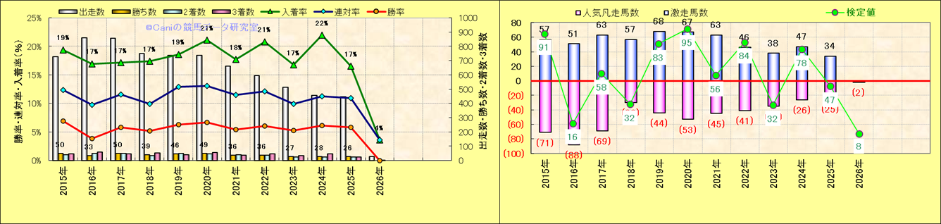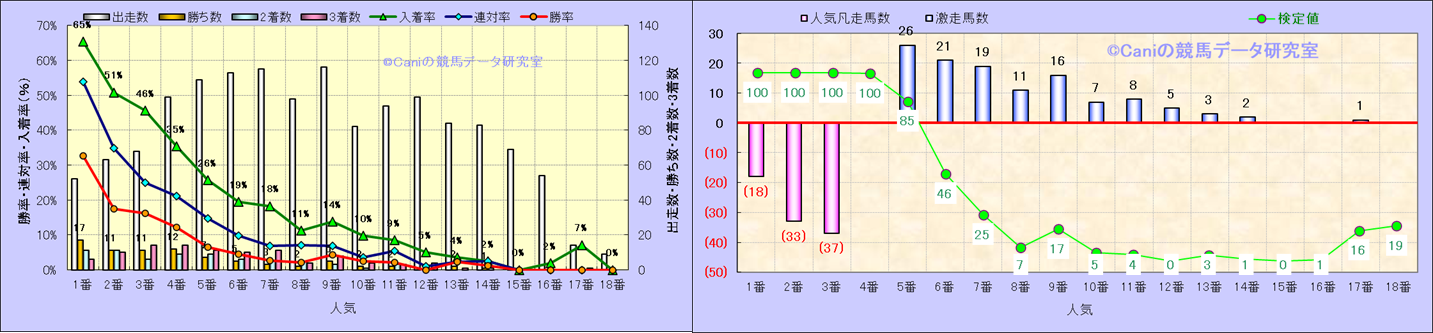 人気凡走馬:1-3番人気で着外、激走馬:5-18番人気で入着 |