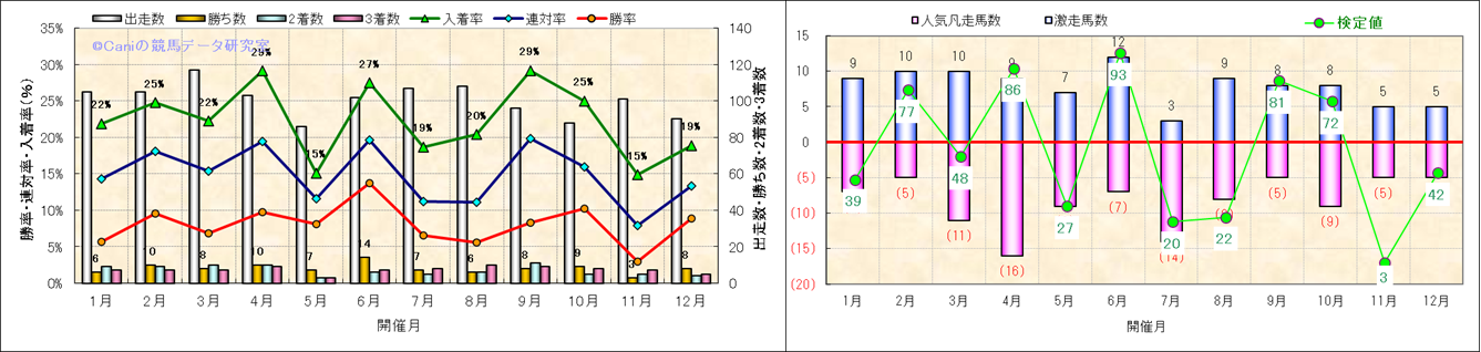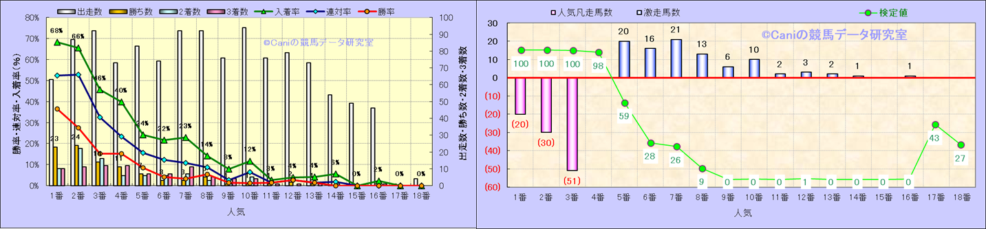 人気凡走馬:1-3番人気で着外、激走馬:5-18番人気で入着 |
