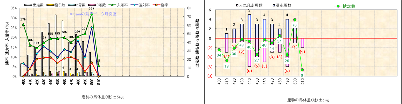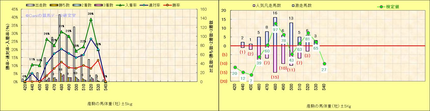 牡産駒の体重別成績-近3年- |