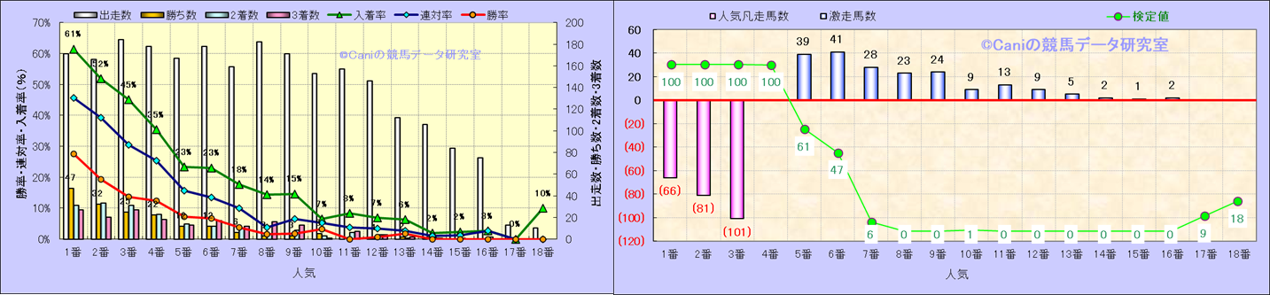 人気凡走馬:1-3番人気で着外、激走馬:5-18番人気で入着 |