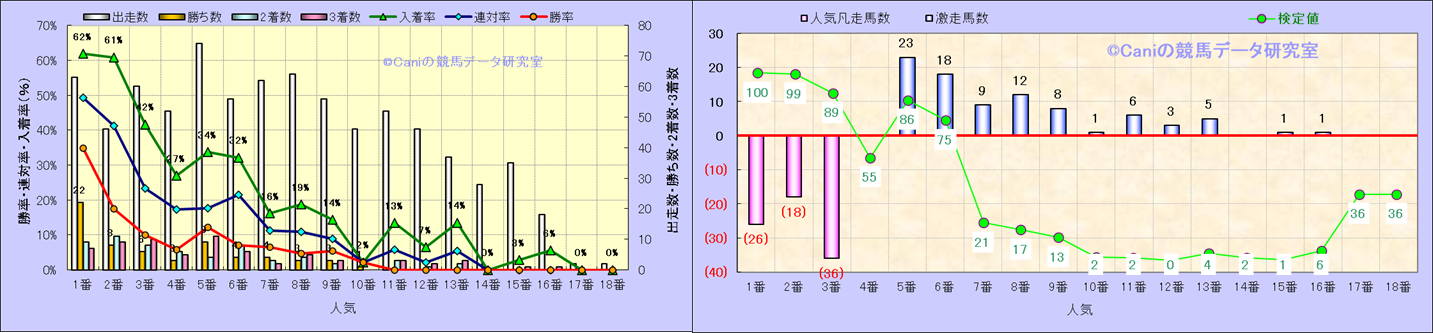 人気凡走馬:1-3番人気で着外、激走馬:5-18番人気で入着 |
