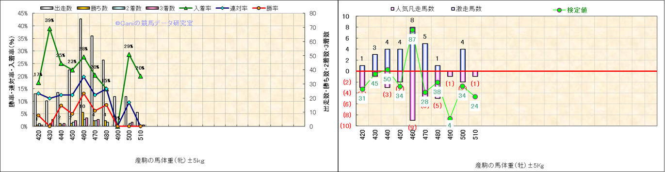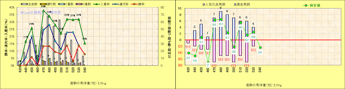 牡産駒の体重別成績-近3年- |