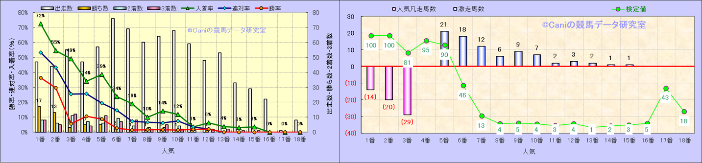 人気凡走馬:1-3番人気で着外、激走馬:5-18番人気で入着 |