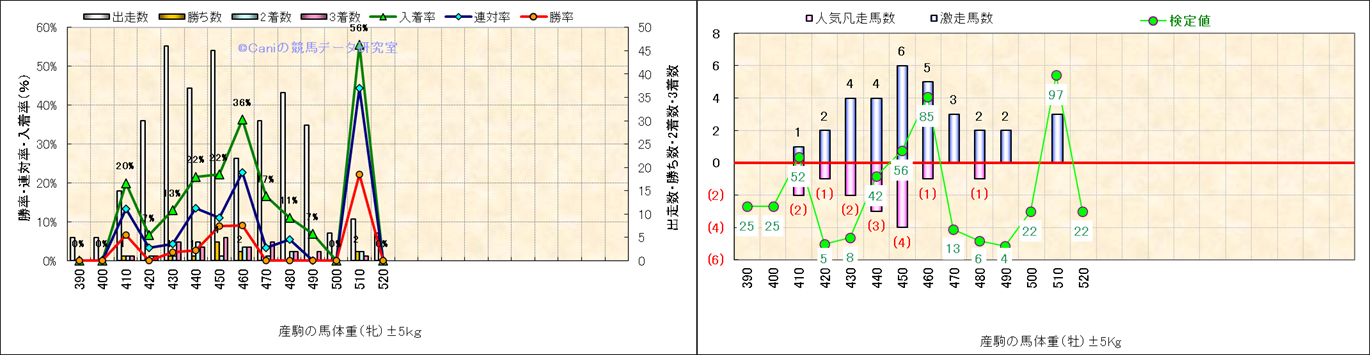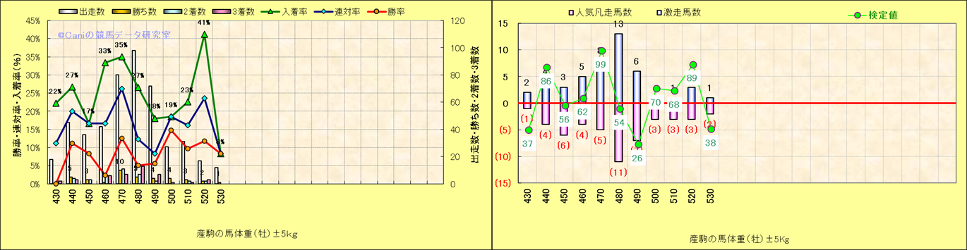 牡産駒の体重別成績-近3年- |