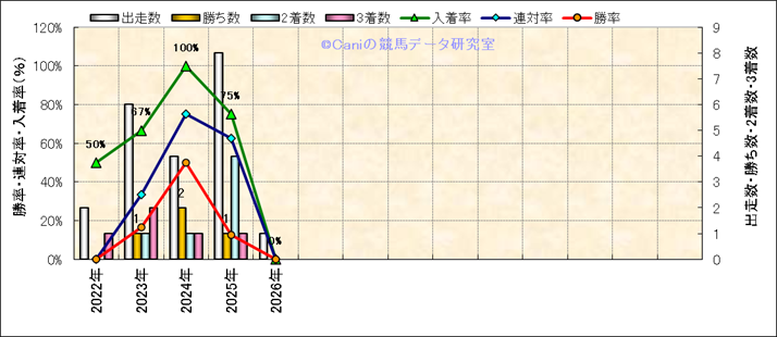 | ダート稍重 | 2 | ■■ | ||||||||||||||||||||||||