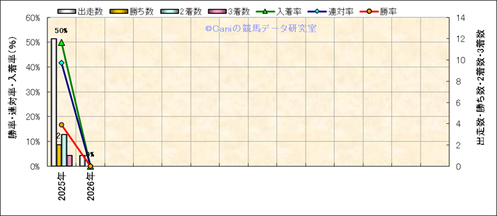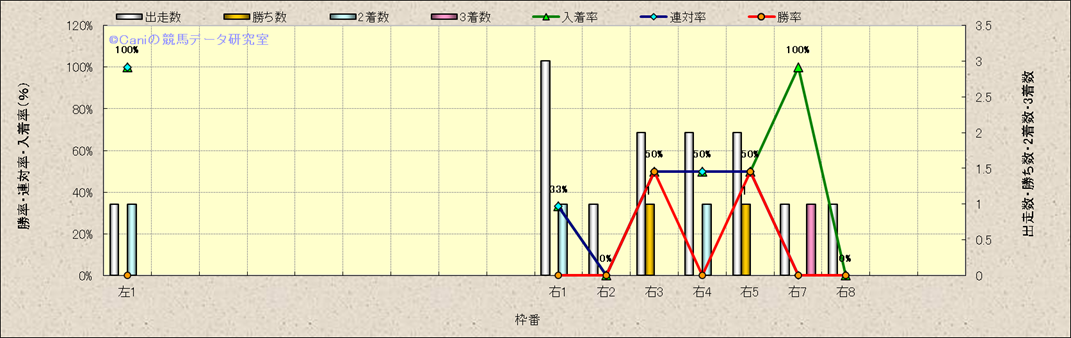 | 最長 | 1400 | 最大 | 55 | 最速 | 33.6 | 34.1 | ()内:上がり順位 | 最大 | 434 | |||||||||||||||||