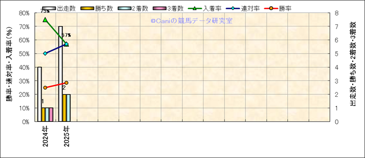 | 2025/1/12 | 中京 | 7 | ダート | 1400 | 500万 | 16 | 10 | 11 | 11 | 高杉 吏麒 | 55 | 1分26秒0 | 1.9 | 36.5 | 37.8 | 外 (8) | 15 | 曇 | 良 | 462 | 74 | 0 | 0 | |||