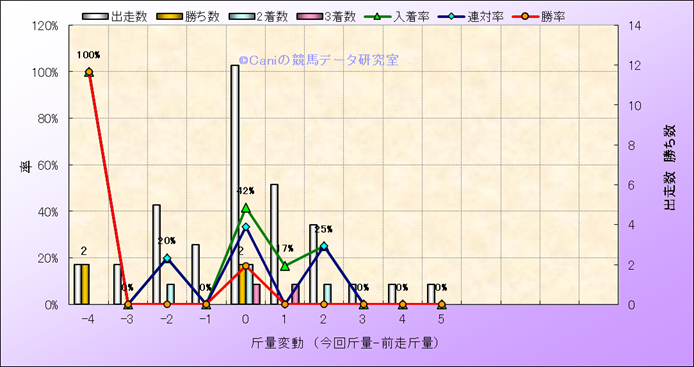 | 斤量変動別解析 | メイショウブレゲの解析 | |||||||||||||||||||||||||