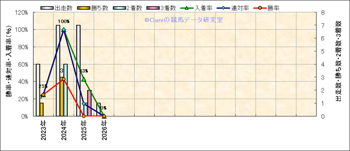 | 最長 | 1600 | 最大 | 58 | 最速 | 34.1 | 34.3 | ()内:上がり順位 | 最大 | 508 | |||||||||||||||||