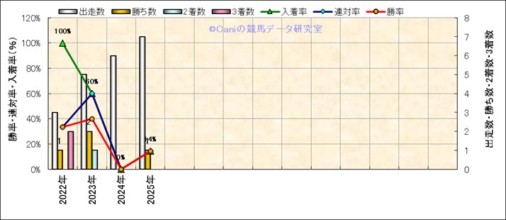 | 最長 | 2400 | 最大 | 58 | 最速 | 35.5 | 33.3 | ()内:上がり順位 | 最大 | 466 | |||||||||||||||||