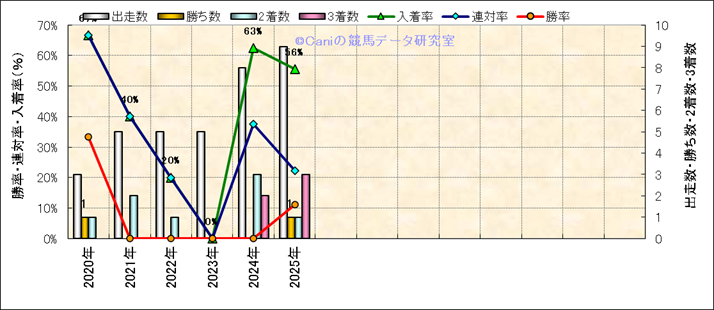 | ダート稍重 | 2 | ■■ | ||||||||||||||||||||||||