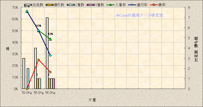 | 斤量変動別解析 | メイショウタムシバの解析 | |||||||||||||||||||||||||