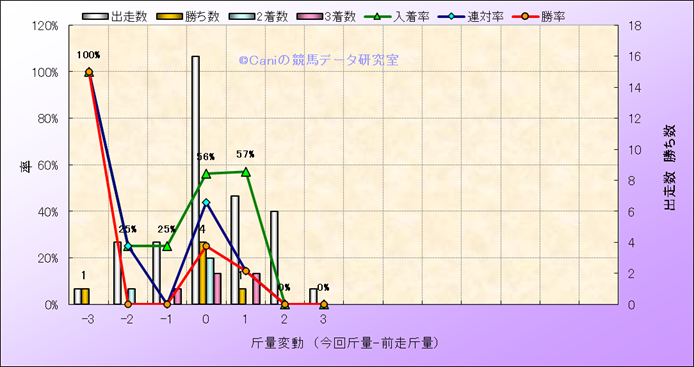 | 斤量変動別解析 | コパノニコルソンの解析 | |||||||||||||||||||||||||
