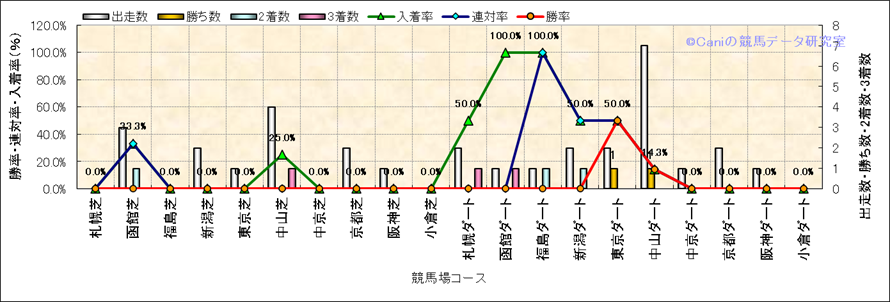 | 2025/8/3 | 札幌 | 9 | ダート | 1000 | 1000万 | 10 | 2 | 7 | 3 | 松本 大輝 | 55 | 0分59秒5 | 0.9 | 24.2 | 35.3 | 最内 (1) | 7 | 晴 | 良 | 460 | 16.2 | 0 | 350 | |||