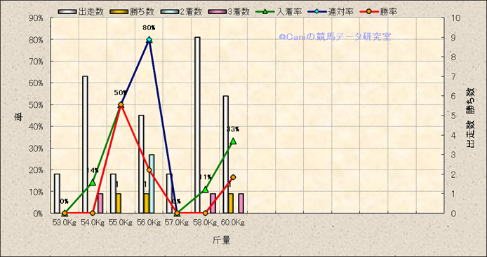 | 斤量変動別解析 | マイネルメサイアの解析 | |||||||||||||||||||||||||