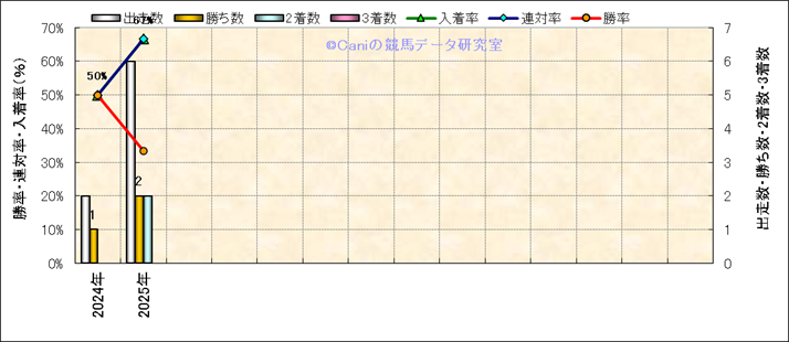 | 最長 | 1600 | 最大 | 55 | 最速 | 33.0 | 33.6 | ()内:上がり順位 | 最大 | 460 | |||||||||||||||||